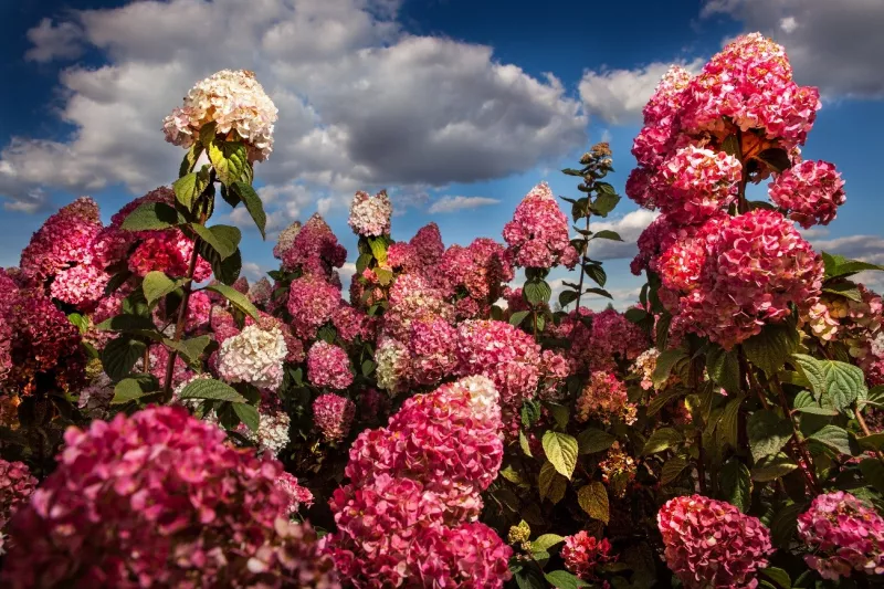 "Грандифлора" – один из самых популярных сортов, известный своими огромными белыми соцветиями, которые в конце сезона становятся розовыми. Куст достигает высоты до 2,5 метров и может использоваться как центральный элемент ландшафтного дизайна. "Грандифлора" предпочитает солнечные или слегка затененные участки, богатые и влажные почвы.