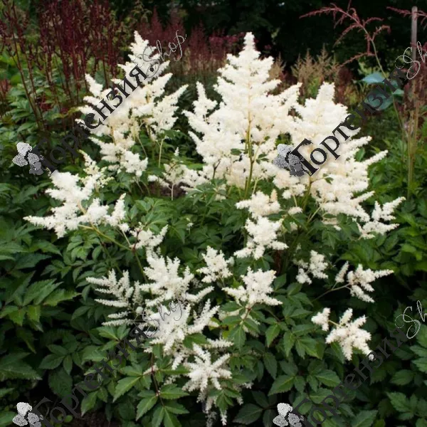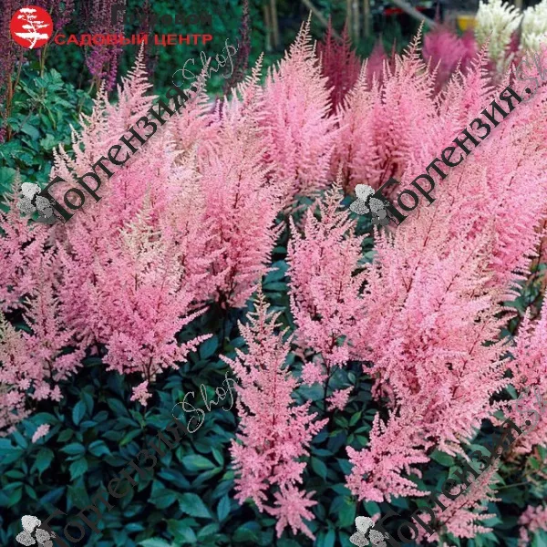Благодаря своему длительному цветению, неприхотливости в уходе, а также росту до 2 метров астильба может прекрасно чередоваться с кустами гортензии, образуя живую изгородь или миксбордер.